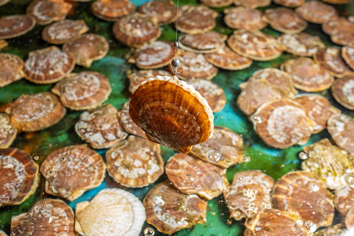 『青森屋』の名物ともいえる「りんごジュースが出る蛇口」と「ほたて釣り」。