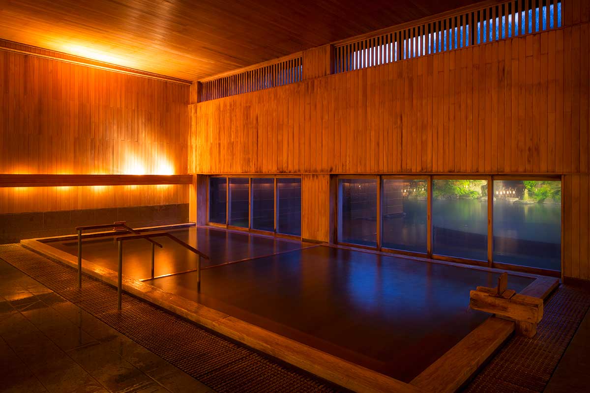露天風呂「浮湯」につながる、ヒバ造りの内湯。