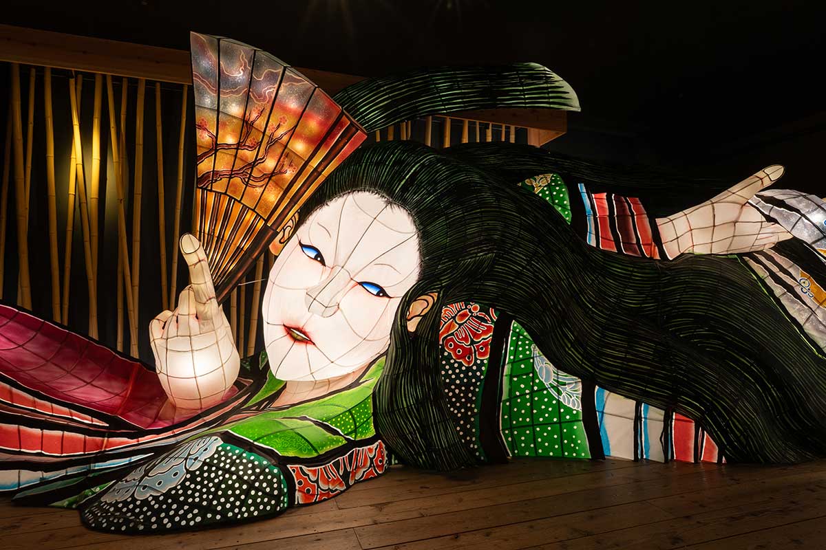 会場は、6人のねぶた師による繊細な作品を配して設計され、青森ねぶた祭、弘前ねぷたまつり、五所川原立佞武多、八戸三社大祭の山車といった“本物”がステージを彩る。