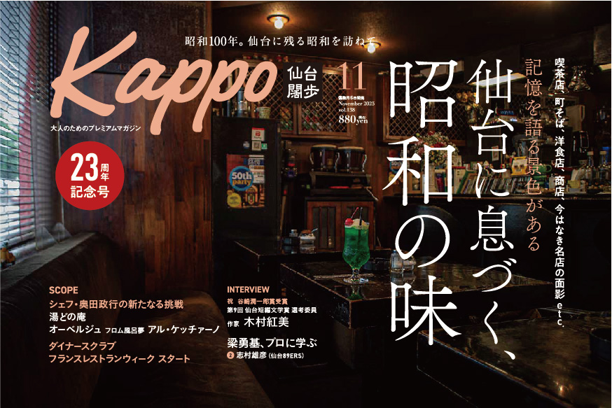 Kappo11月号では「仙台に息づく、昭和の味」と題し、街の歴史を彩ってきた老舗を訪ねました。