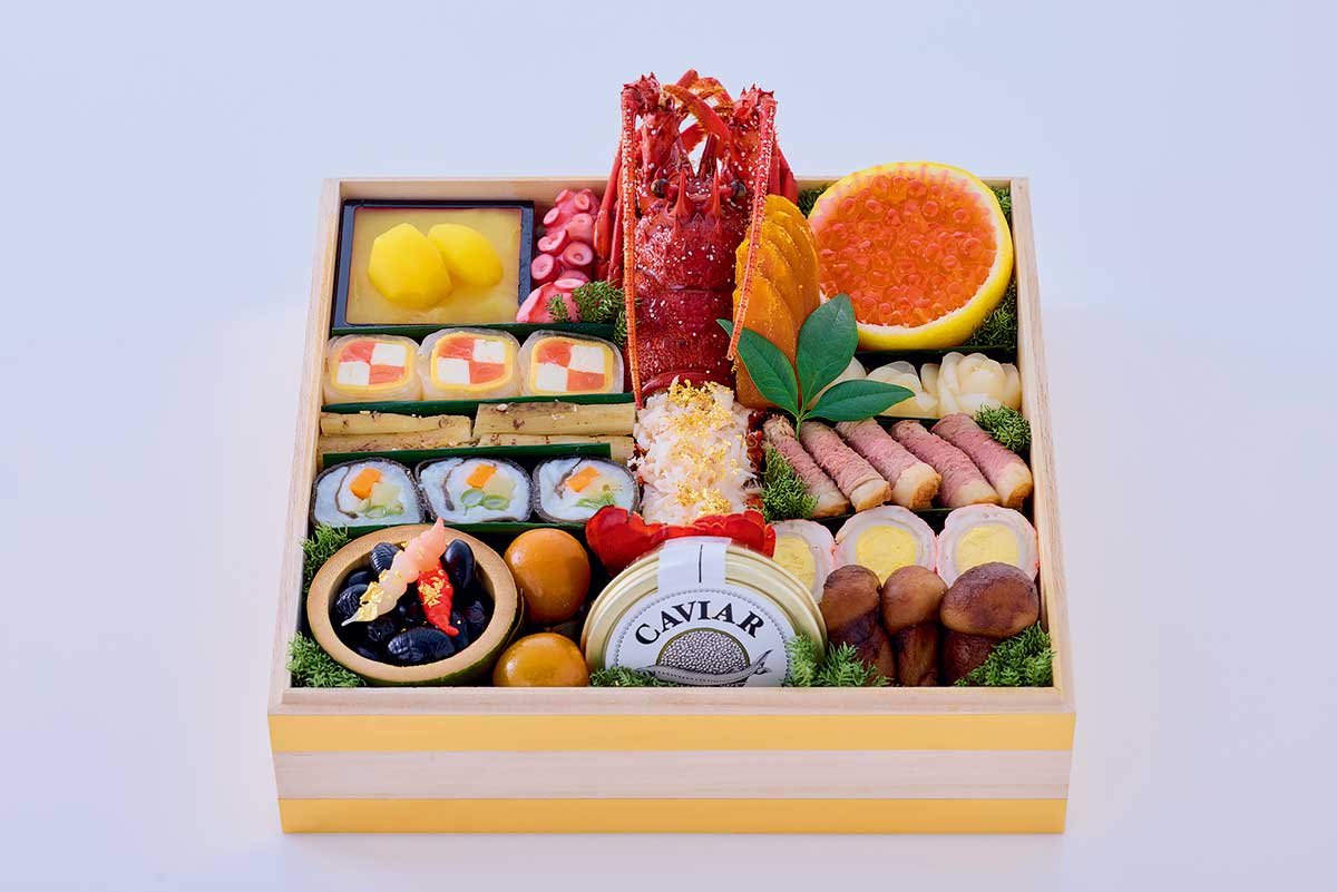 縁起を担ぐ定番の祝い肴をはじめ、伊勢海老、鮑、たらば蟹、フカヒレ、キャビア、仙台牛など高級食材を惜しみなく使用した料理が絢爛豪華に彩ります。