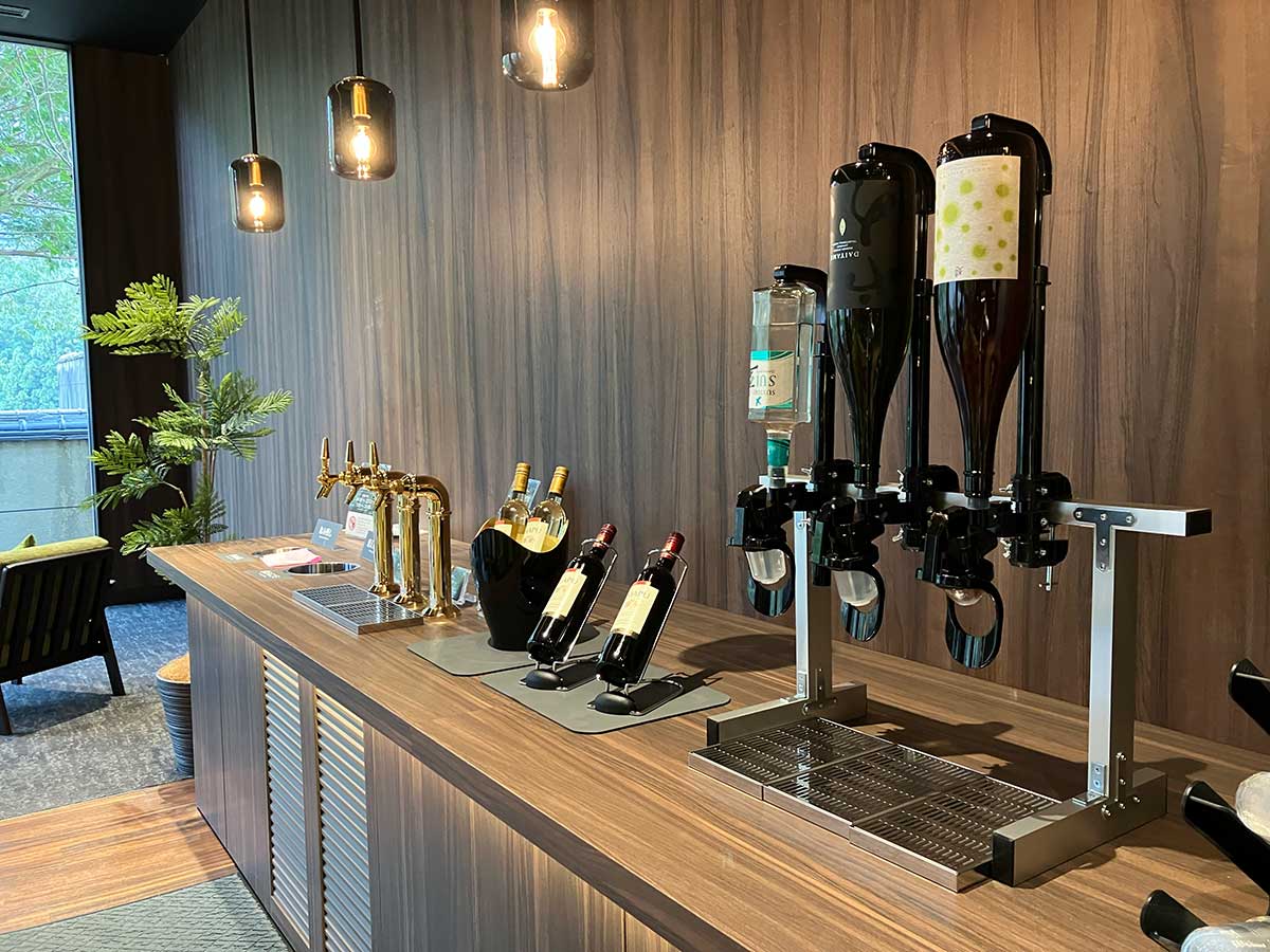 プレミアムラウンジにはソフトドリンクはもちろん、ビールや地酒、ワインといったアルコール類も。
