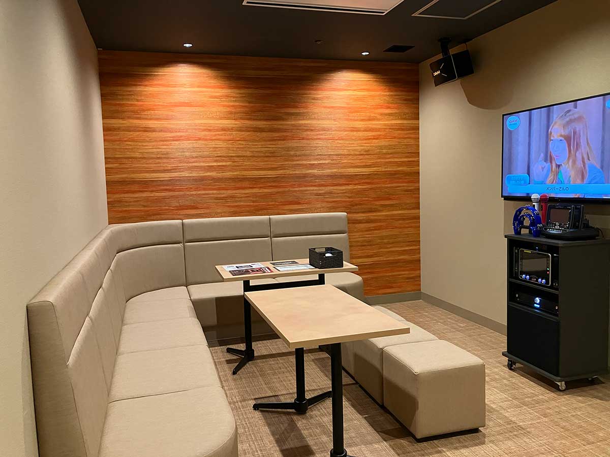 全部屋が個室のカラオケルームを完備(夜は有料)。