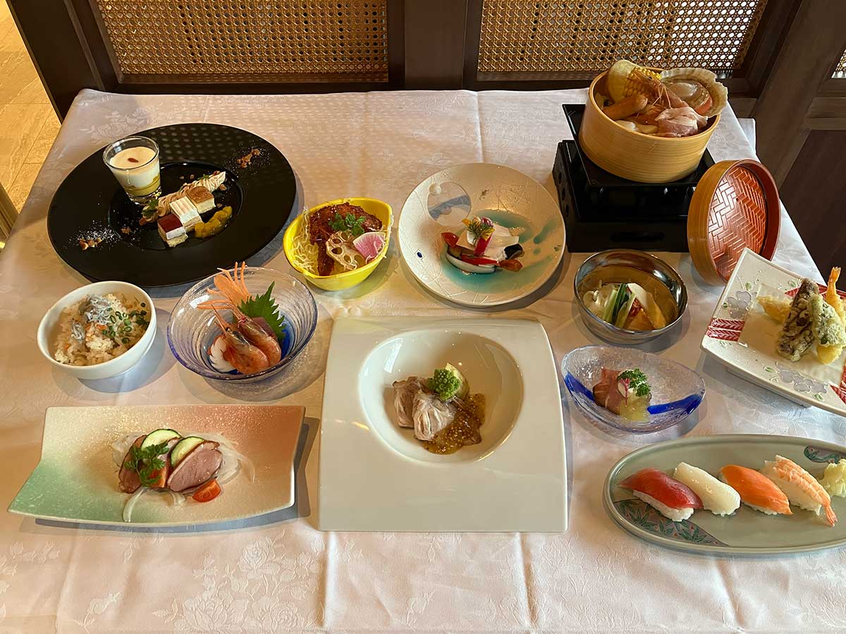 肉や魚を使った定番メニューに加え、花巻や岩手にちなんだ料理も並び、旅先での食事らしい楽しさが演出されていた。