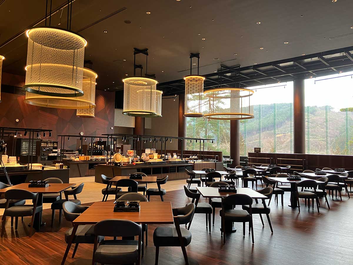 レストランは、大きな窓越しに花巻の自然を望む、開放感のある空間。