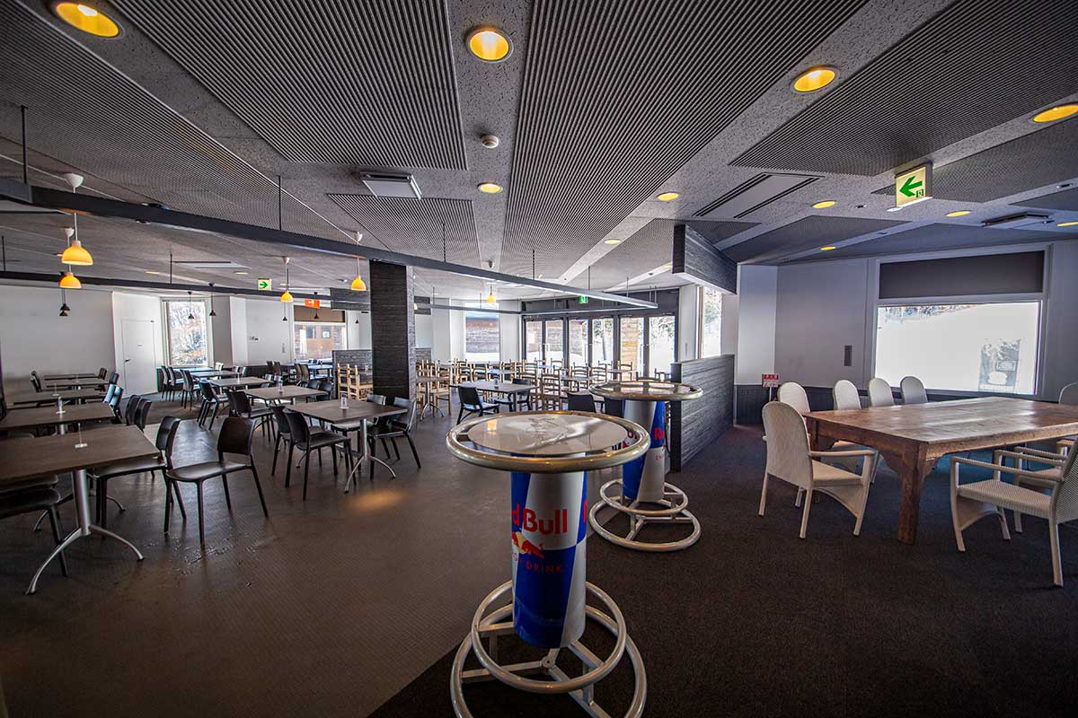 昼食で食べてほしいのは、レストラン「The Rider’s」の名物「The Rider’s Burger」。冬季のみ営業しており、ゲレンデの南エリア中腹にあるため、滑らないと食べられない、まさにこの場所ならではの味だ。