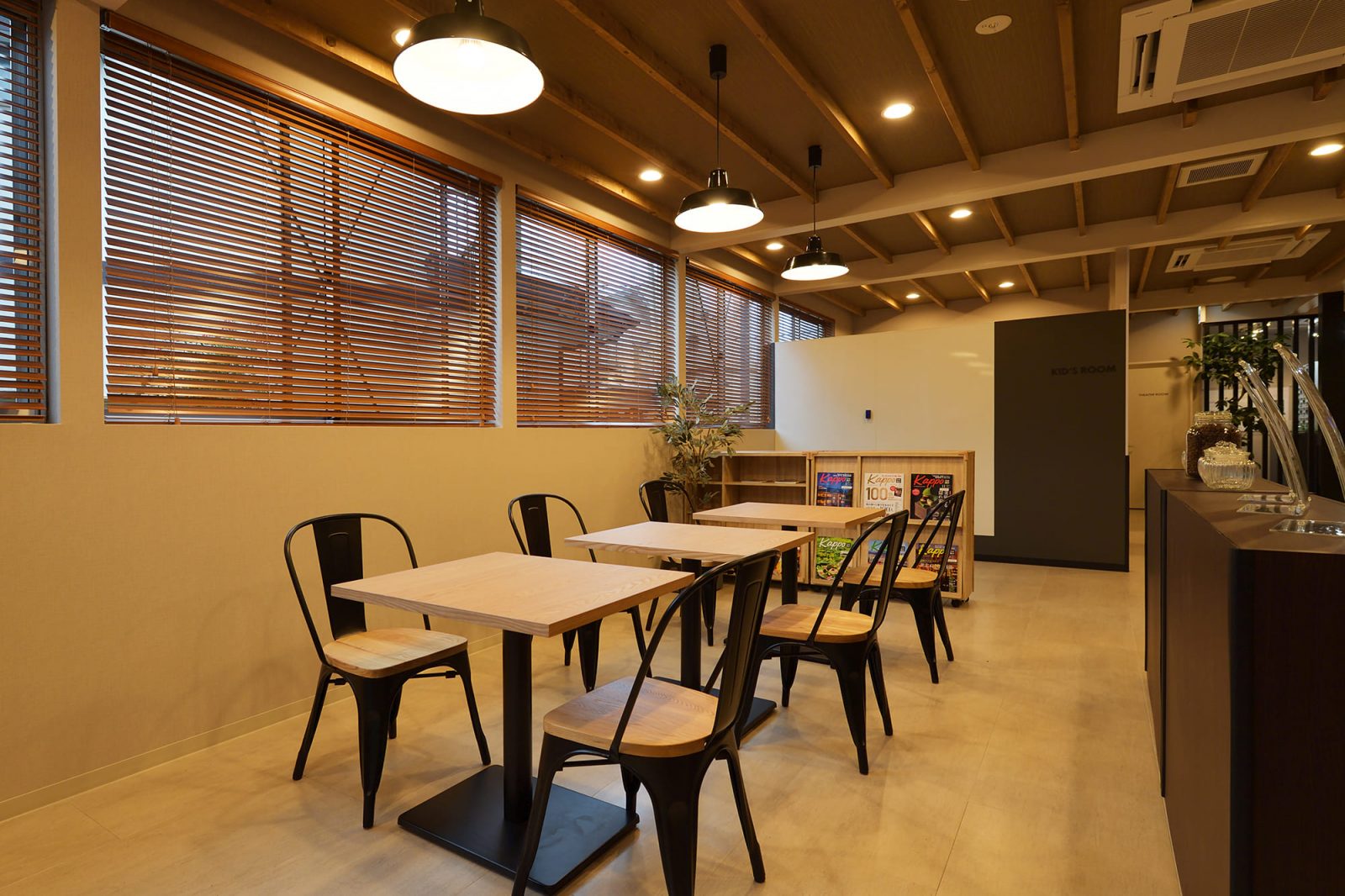 1階のカフェスペース。2階は「プレミストあすとテラス」のモデルルームとなっている。