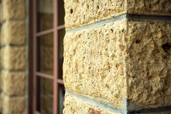 1階の外壁や柱に使われているのは、今では採掘されていないという貴重な塩竈石。シンプルな外観に格式を与えている。