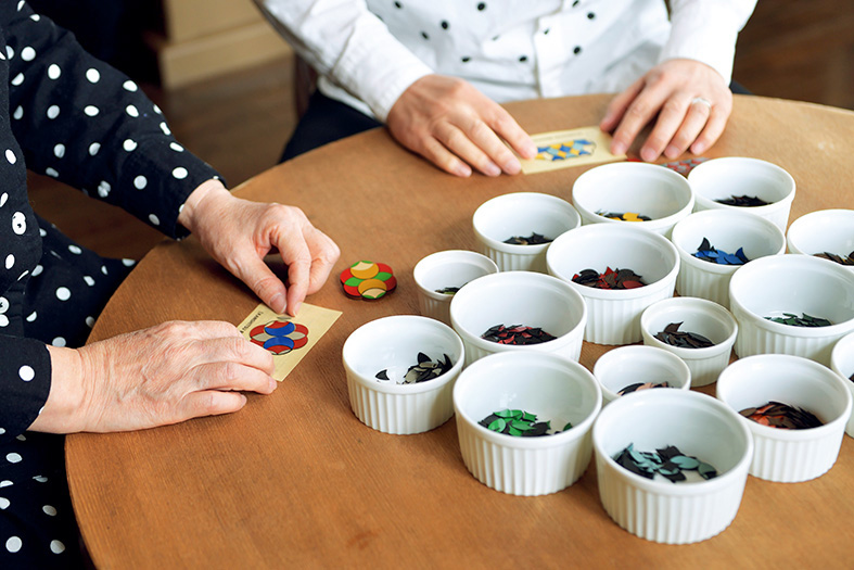 こちらを訪れるのは初めてというふたり。建築当初の姿を残している館内の設えを一つひとつ確かめながら、板張りの階段を上がる。2階の常設展示室に並ぶのは、塩竈ゆかりの洋画家・杉村惇氏の作品。塩竈に疎開した杉村氏は、塩竈の風景や港に揚がる新鮮な魚などを数多く描いている。ダイナミックで力強い描写はもちろんのこと、年代による作風の変化も楽しみの一つ。ponさんが「これはちょっと雰囲気が違いますね」と気になった絵は、晩年の作品。なるほど、東洋画の墨色に憧れ、黒を基調としていた塩竈に移り住んだ当初の作品に比べて、彩りが加わり明るくなった印象だ。さらに杉村氏の作品の魅力は、ユニークなモチーフにもある。古いランプやグラス、酒瓶などを好んで集めていた杉村氏。アトリエを再現したコーナーには、それらも一緒に置かれている。「好きなものがちょっと似ている」とponさんは親しみを感じたようだ。鑑賞後は隣のサロンでひと休み。塩竈の歴史に触れる資料を眺めた後は、乾漆ピースを組み合わせて作る「乾漆ブローチ」の体験も楽しんだ。