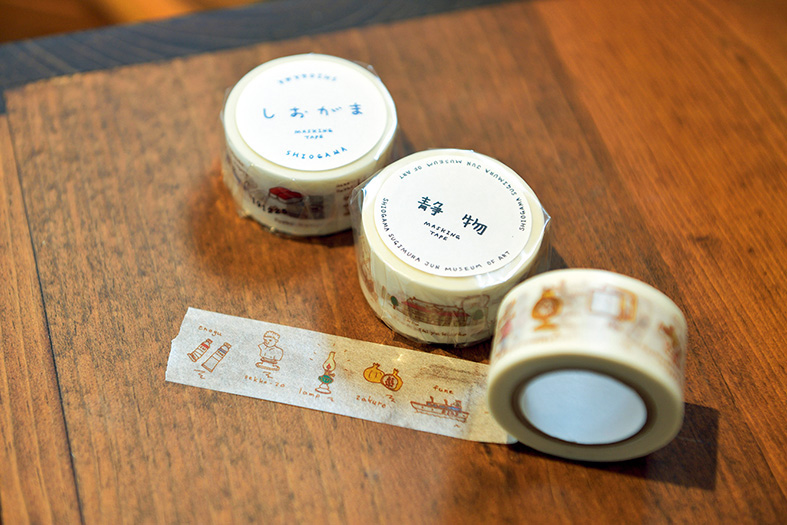 bonponさんのお気に入り 杉村氏の静物画のモチーフや、塩竃の歴史と暮らしを描いたオリジナルのマスキングテープ(430円)。ponさんは「静物」をお買い上げ。