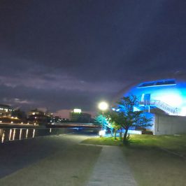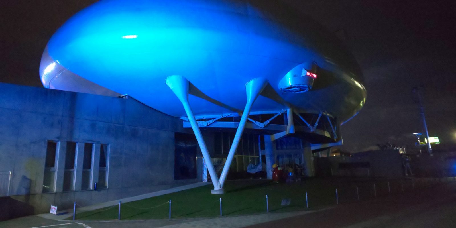 ブルーライトアップされた建物。