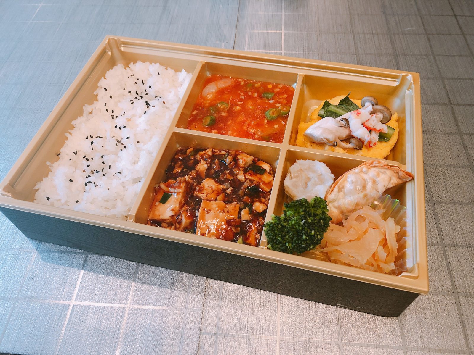 カメイアリーナ仙台(仙台市体育館)から徒歩5分ほどの場所にある『熱上海(ほっとしゃんはい)』は、500円ランチとプレミアムテイクアウトコーナーに登場。自家製豆板醤を効かせた店の看板・麻婆豆腐と、えびと玉子のチリソースといった2つのメインのほか、点心や惣菜が入った1800円の御膳が、1000円で食べられるお得な一品。1日10食限定なので、早めの来店がおすすめだ。