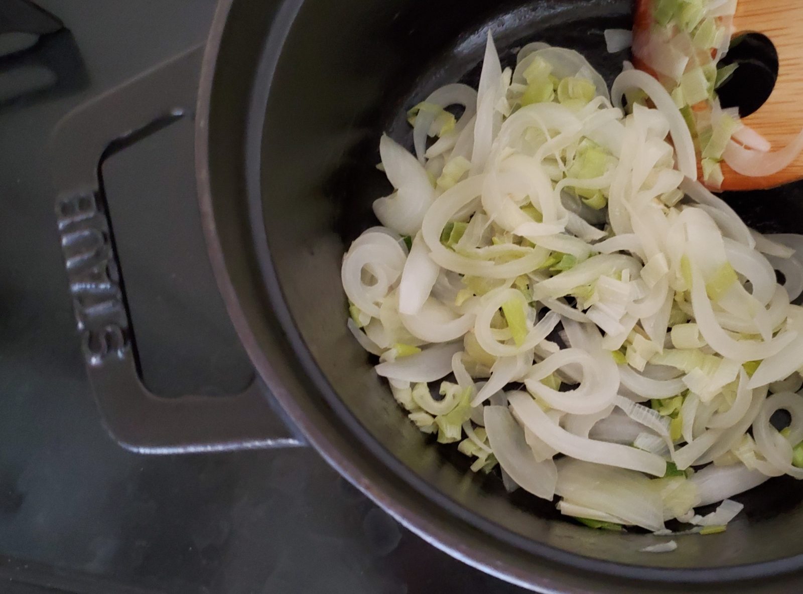 長ネギはどのタイミングで入れたら良いのだろう? と悩みながらも途中で投入。