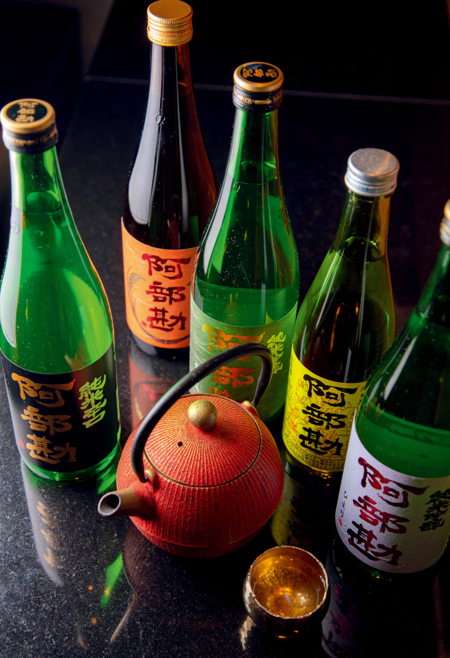阿部勘酒造の酒をフルラインナップ。定番から、いまが旬のひやおろしまで取り揃える。
