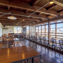 太白区向山。広瀬川を見渡せる坂野通り沿いにある『鹿落堂』は、2017年にオープンしたそばと甘味の店。カフェのような明るい店内。広い窓からは広瀬川と仙台の街が見える。