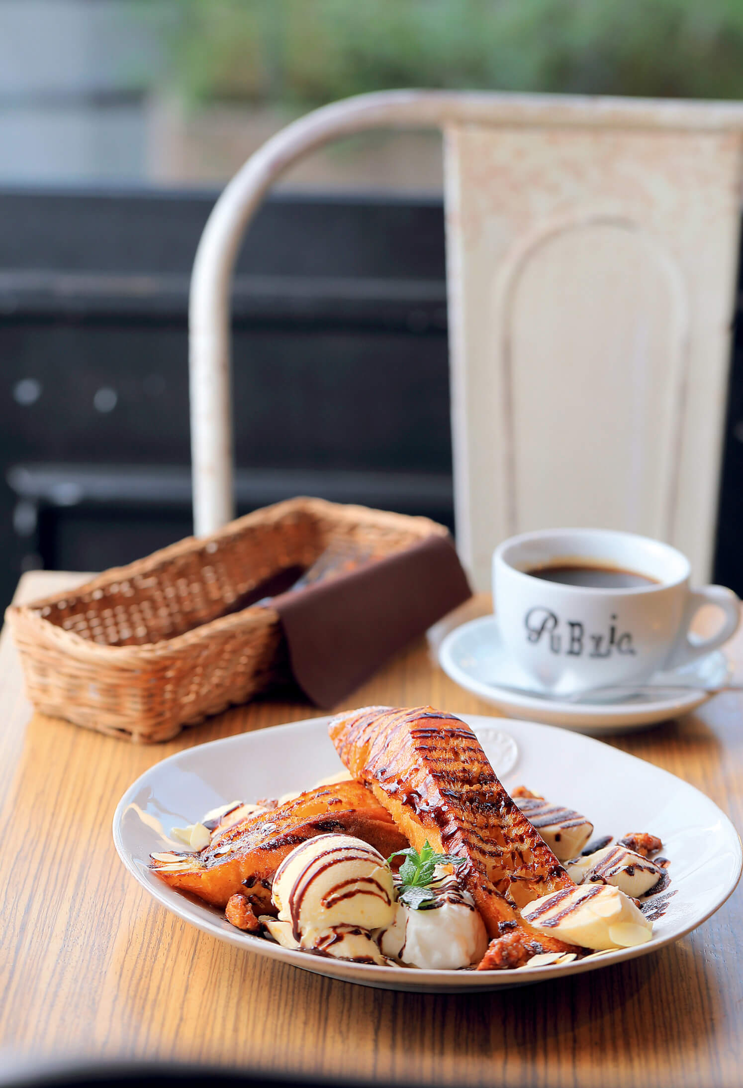カフェタイムの限定メニュー「チョコバナナのフレンチトースト(アイス付)」(1188円)。
