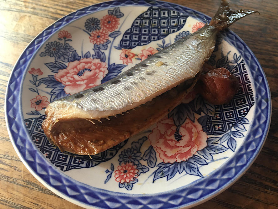 メニューは和食を中心にラインナップ。一例として、山椒・笹の葉・梅干しと一緒に煮付けた「真イワシの梅煮」(2尾600円)。湿度のある今の時期に食べたい、程よい酸味で箸もお酒も進む一品です。