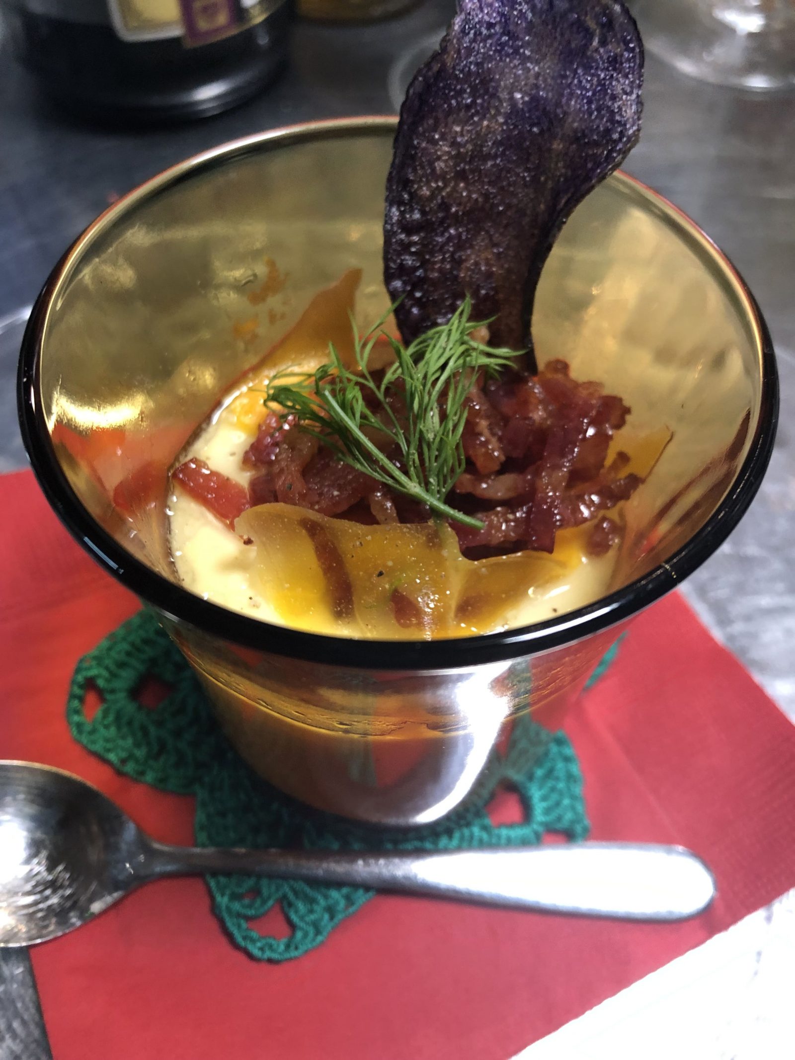 ホヤから出汁を取り、卵・生クリームと合わせて蒸し、洋風茶碗蒸しのような一品に。