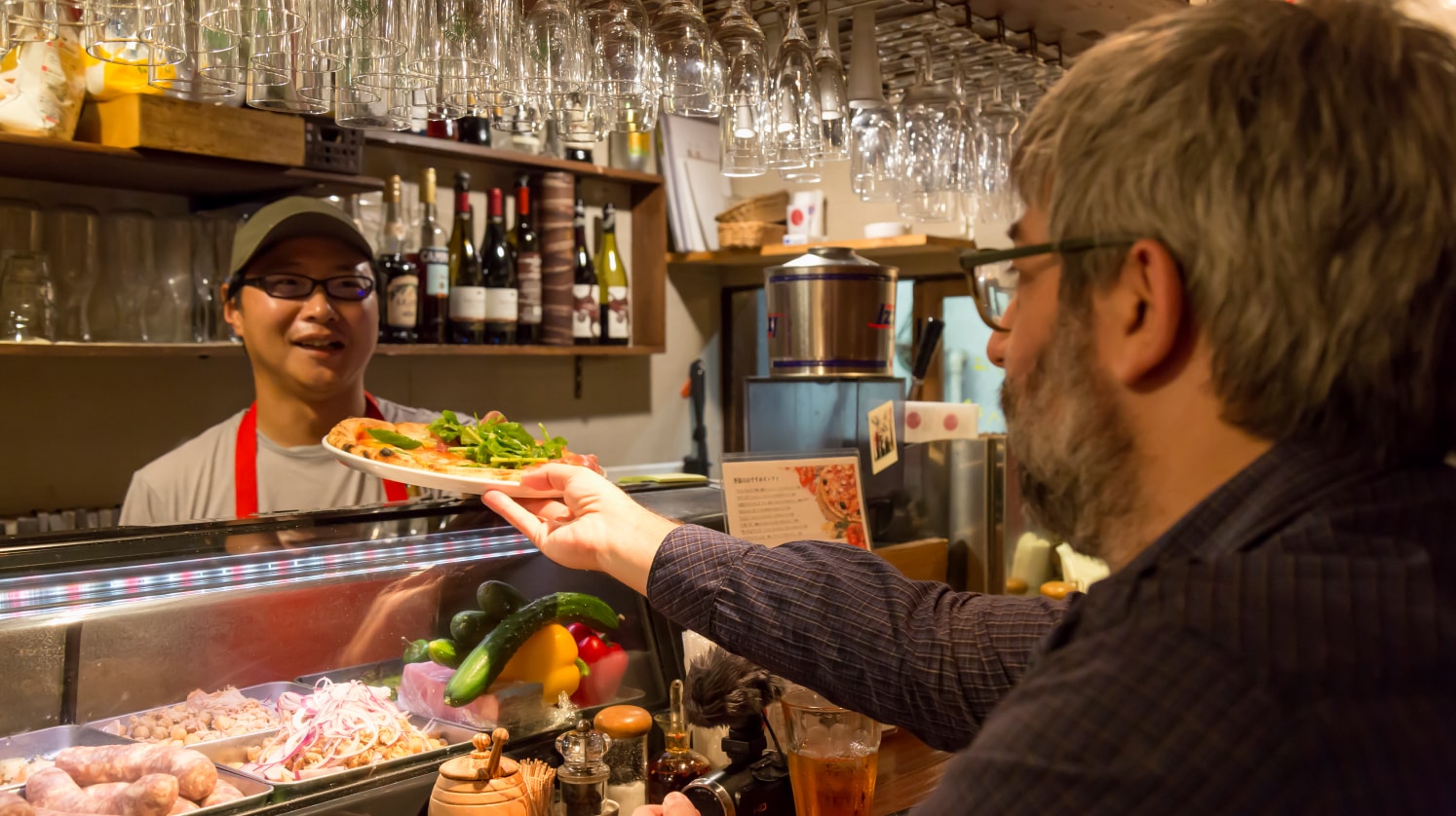 ハンディカメラを片手に、人懐っこい笑顔で話すダヴィデ・ビッティさん。仙台在住歴はのべ5年間、東北大学で日本思想史を研究していた彼は、日本語、イタリア語、英語を難なく操る。今では、動画サイトYouTubeでチャンネル登録者数約5万人を誇る人気YouTuberだ。仙台に来た当初は大箱の居酒屋などに行っていたというが、次第に小さな店が軒を連ねる横丁へも足を運ぶように。特に、壱弐参横丁のピッツェリア『ろっこ』はオーナーの庄子達広さんがイタリア語を話せることもあって、ダヴィデさんの行きつけとなった。