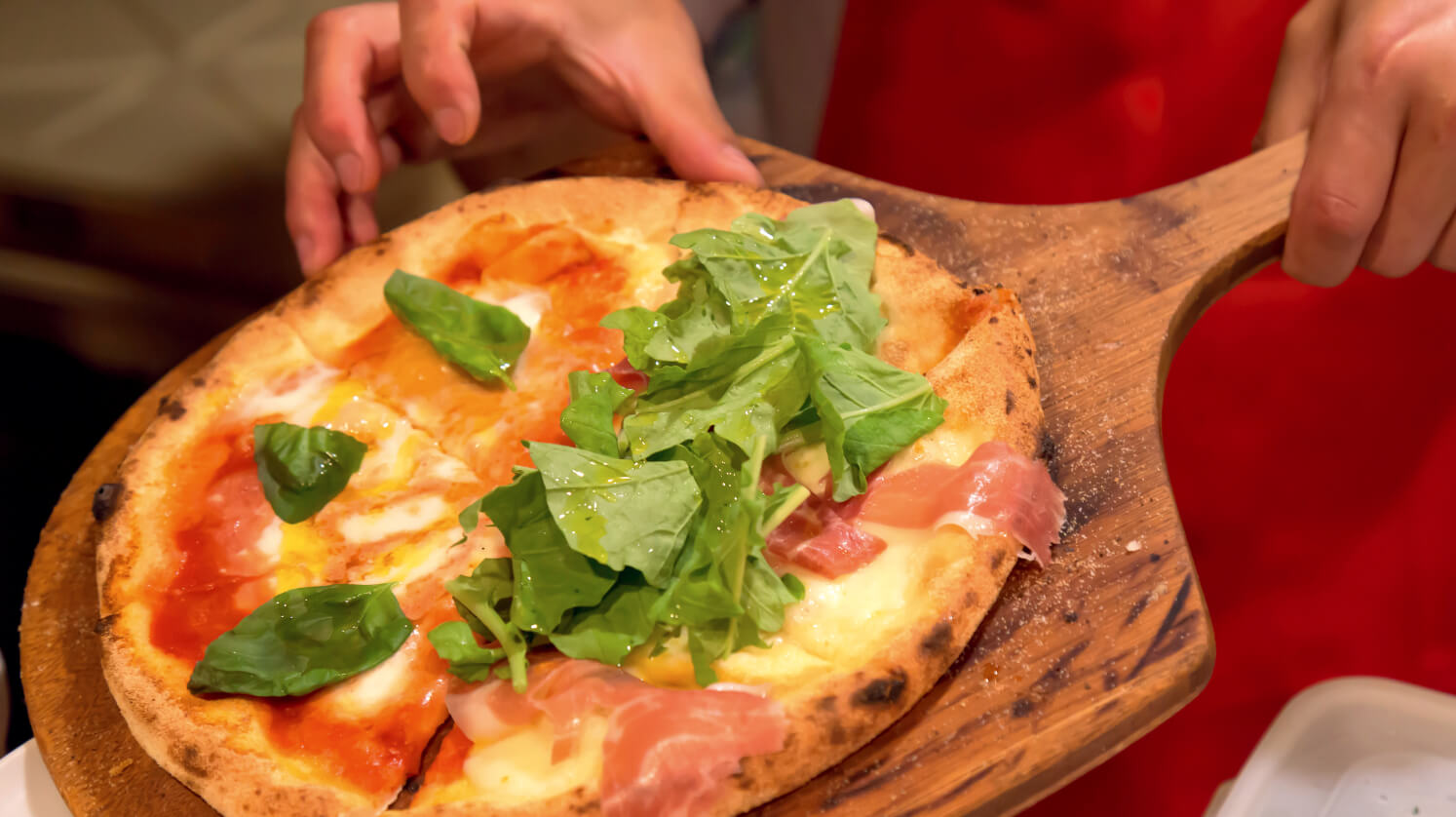 ピッツェリア『ろっこ』の焼き立てピッツァ。ハーフ&ハーフもできる。
