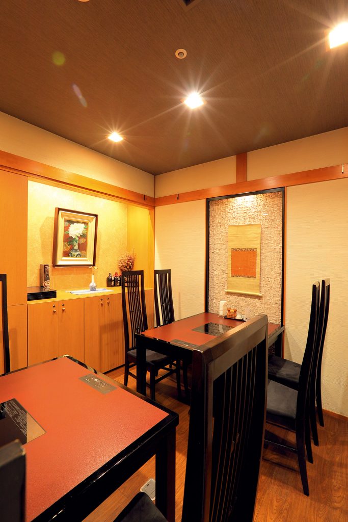 半個室と完全個室を用意する店内。 ランチタイムもコースであれば席の予約が可能だ。