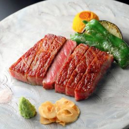 提供されるコースの内容は月替り。メイン料理の仙台牛ステーキは、表面はカリっと香ばしく、中はレアでもないミディアムでもない、それでいてきちんと火が入った“ローズ焼き”。
