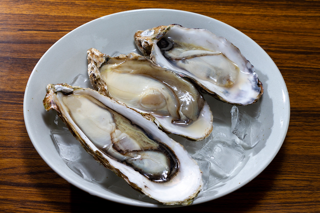 殻付きの桃浦かき。これは旬の時期に収穫した、身の詰まったもの。特殊処理をほどこしており、夏でも生でおいしく食べられるのが特徴。撮影=菊地淳智