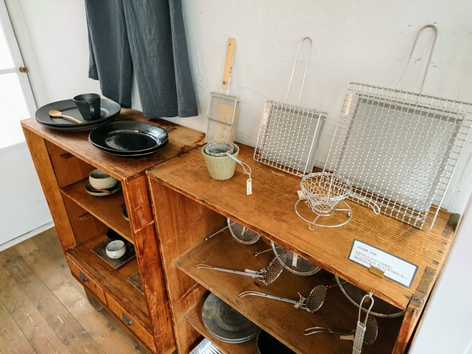 「辻和金網」の商品は、手付焼網のほか、おとしぶた、コーヒードリッパーなどもラインナップ。繊細な網目の美しさに職人技が光る