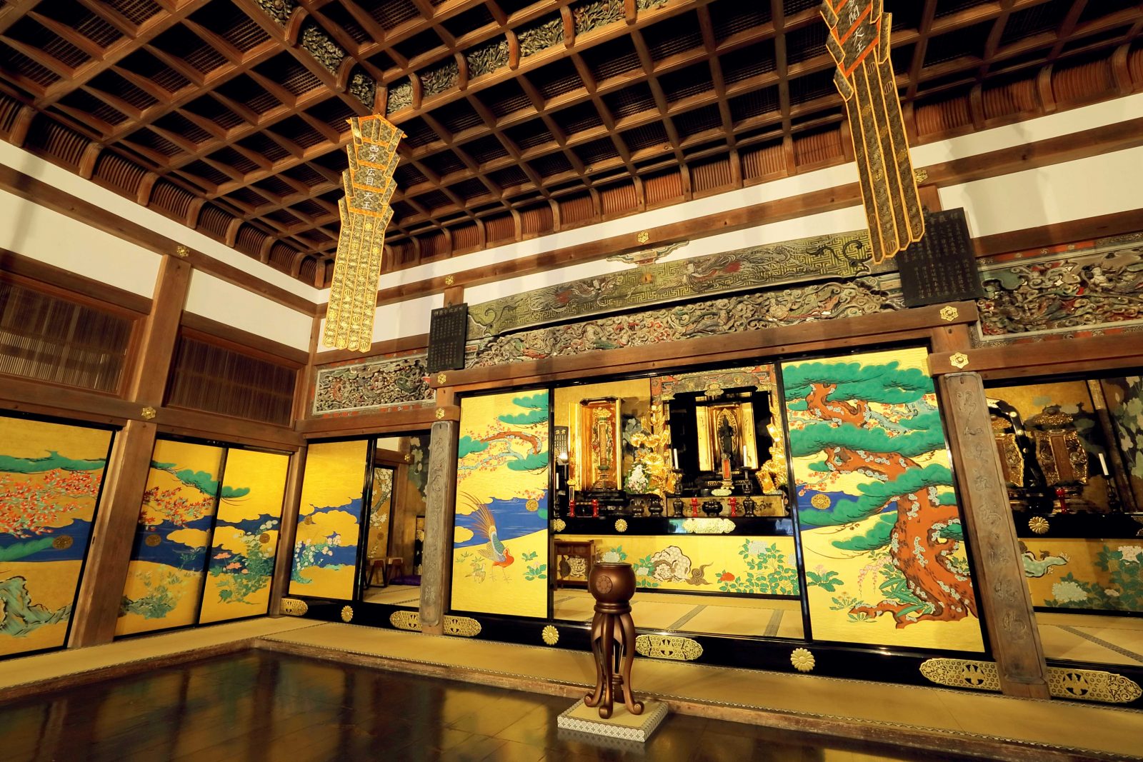 本堂の室中、孔雀の間。普段は立入禁止だが、運が良ければ体験会の前に室内で鑑賞ができる。