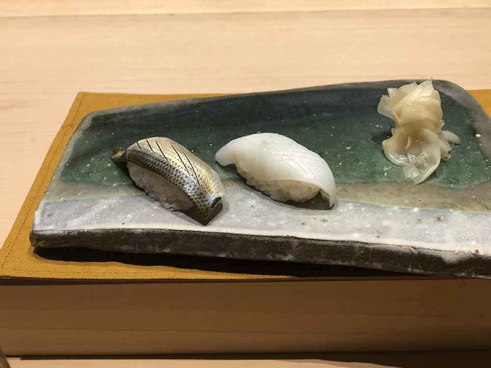 小肌はしっかりと〆てあり、キュッとした酸味が。イカにもすだちを絞り、ほんのりと香りが付いています。