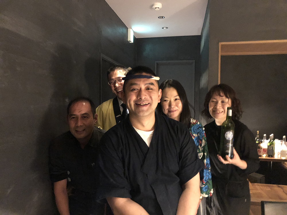 親方と、毛利さん、佐藤さん、主催した岡沼さんと、秋保ワイナリーのソムリエ・横山奈美さん。