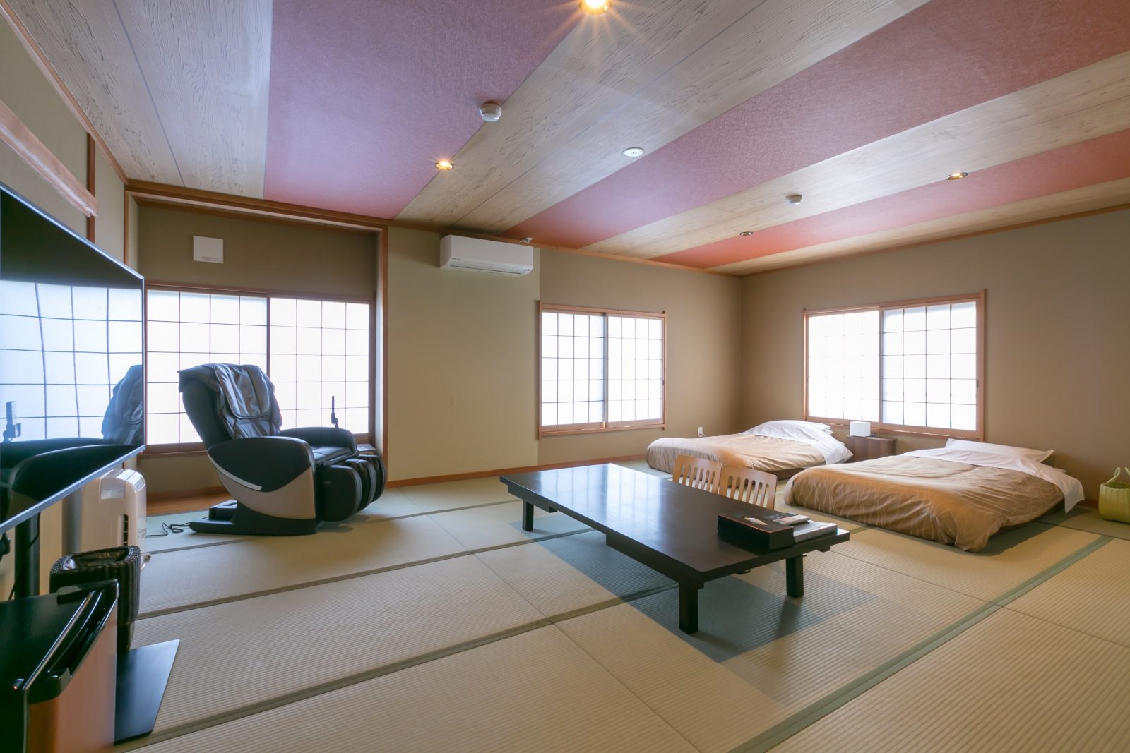 4~5名向けの和室にはマッサージチェアを備えている。旅の疲れをじっくりと癒そう。