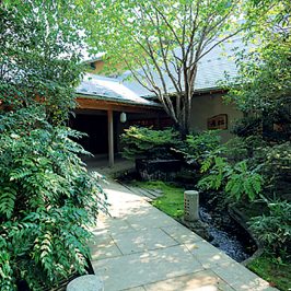 『茶寮宗園』は、数寄屋風造りの美しい、純和風の湯宿。1階と2階、どの客室からも日本庭園を望めるのが自慢の一つだ。10室ある離れの客室のうち、9室に露天風呂が付いており、よりゆったりと時を過ごせる。