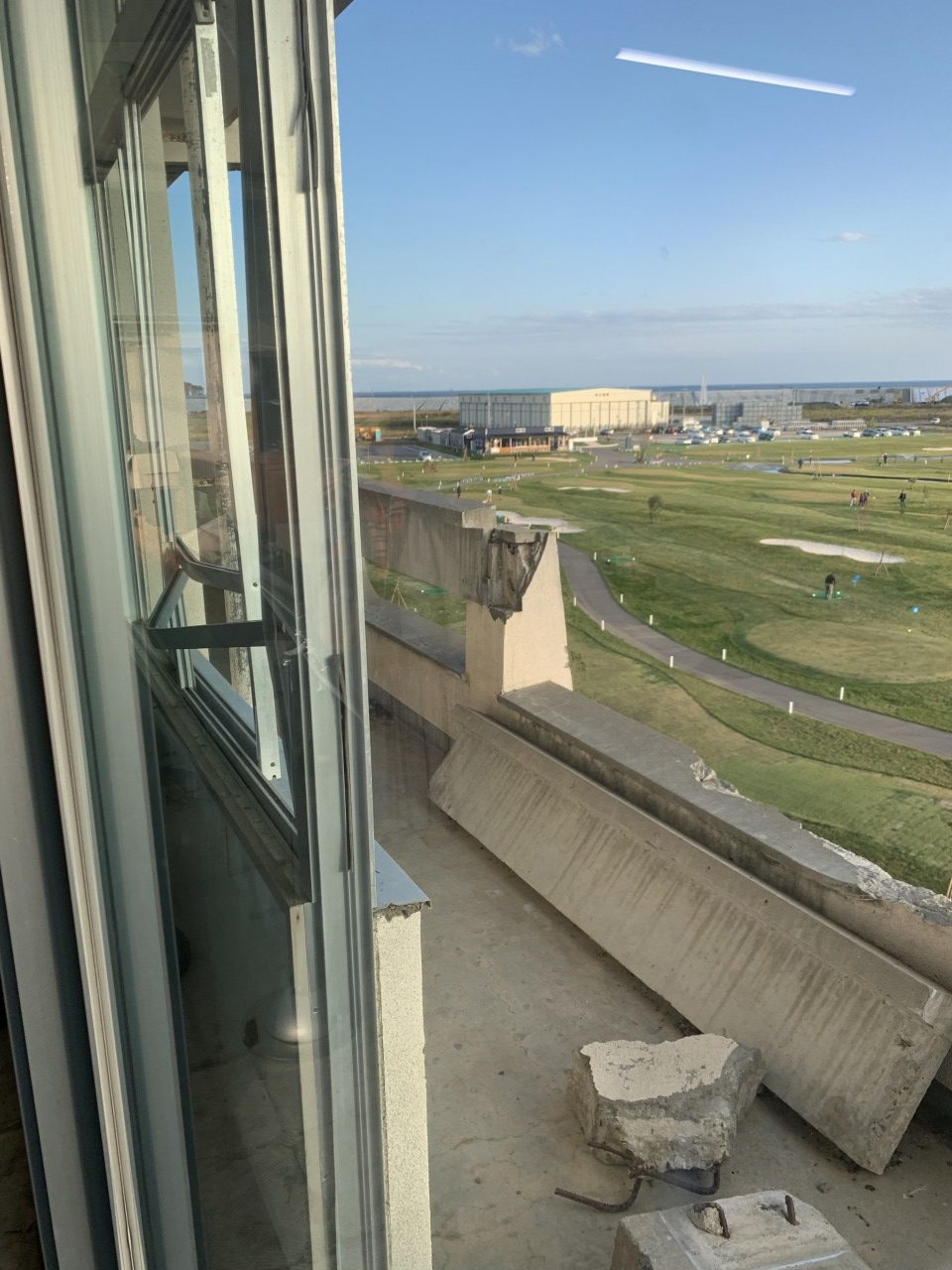 いま窓の向こうには、最近できたばかりのパークゴルフ場が広がるが、この高さまで津波が来たことに改めて衝撃を覚える。最終的に津波が到達したのは4階の床から25cmの地点までだったという。