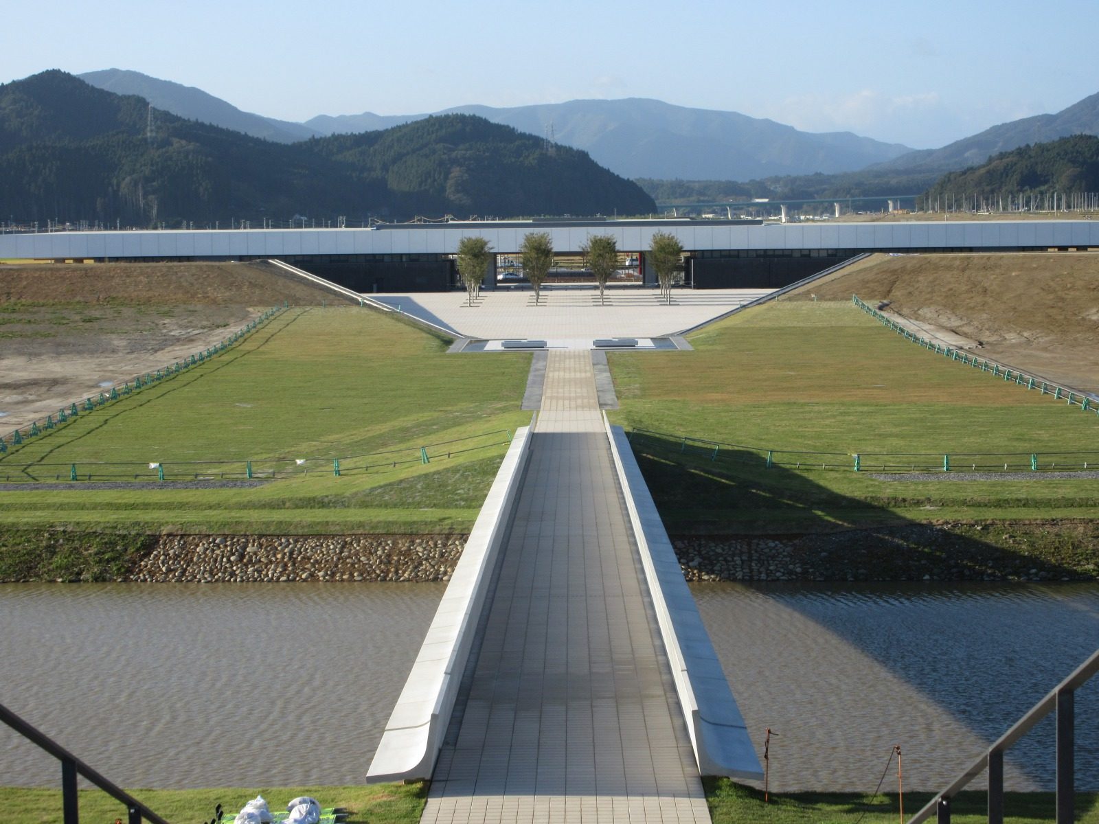 追悼式典も行われる広場のなか、古川沼に架かる人道橋を経て、階段を上る。潮騒とともに海への眺望が開かれていく。防潮堤の最上部には、「海を望む場」が設けられ、献花台が置かれる。眼前に広がる広田湾の壮大さに心震え、花を手向ける。