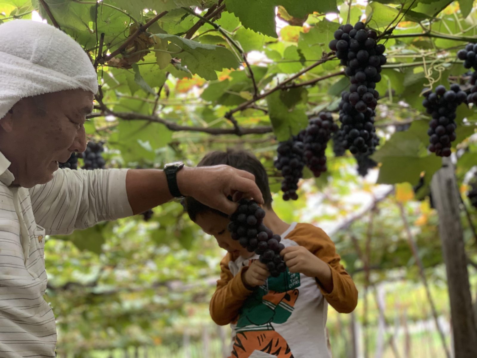 2020年9月のブドウの初収穫の際には子どもたちも参加。自然の営みを肌で感じる貴重な体験となった