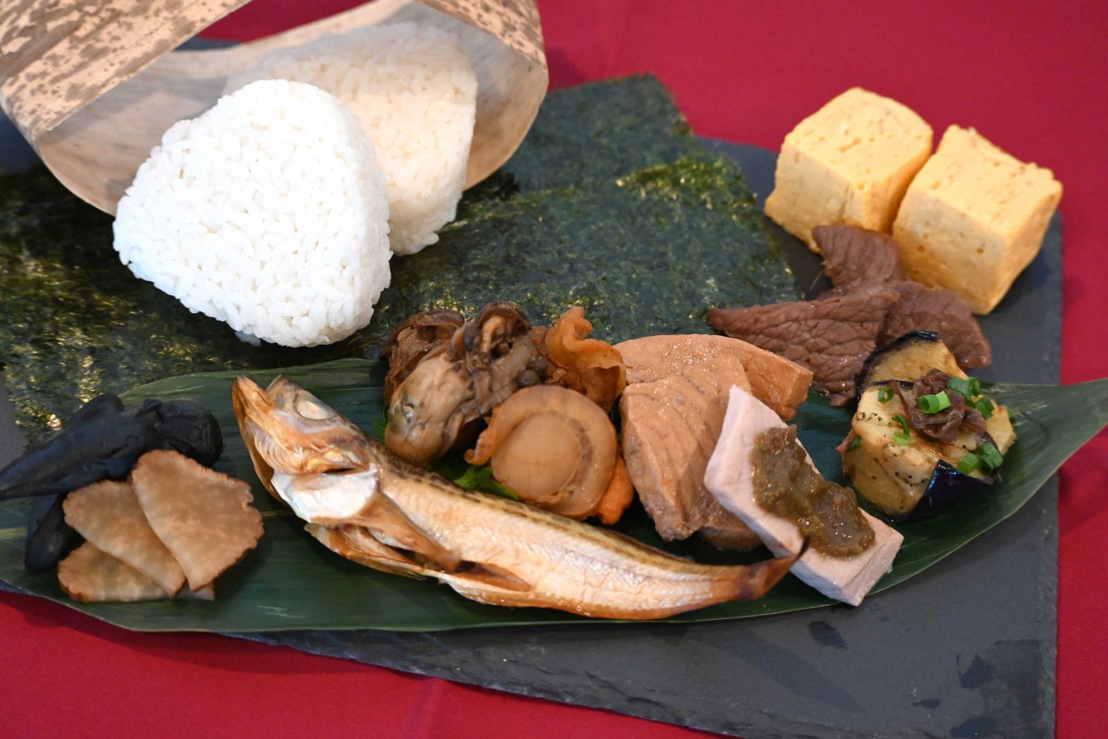 モーニング(6:30~10:00)限定メニュー「東北6県おにぎり」(700円)。お茶漬け風にアレンジできる「一番だし」(+100円)もおすすめ。※おにぎりの具材は撮影用に6種類を盛り付けている
