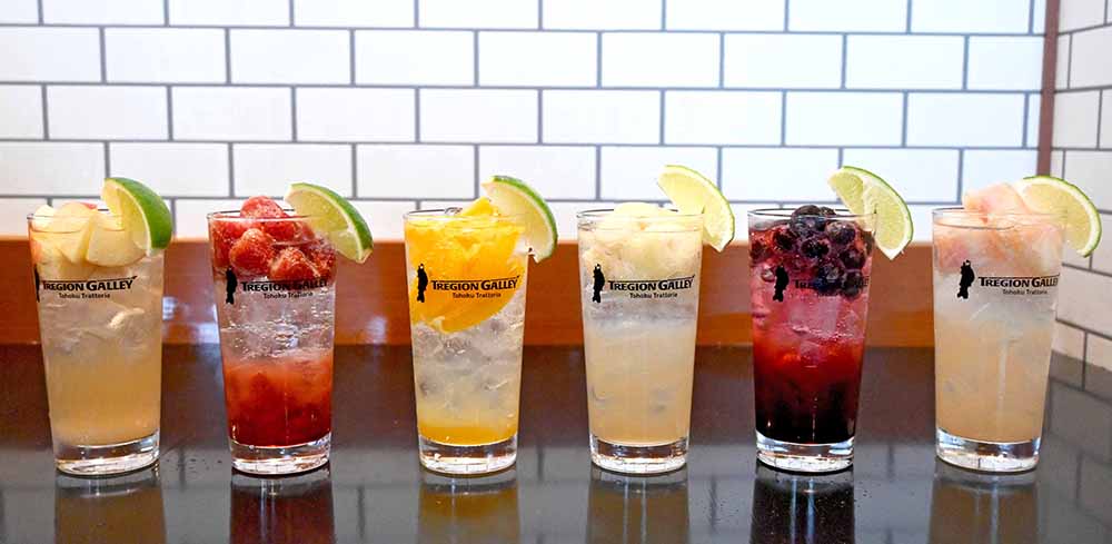 「東北6県サワー」(各880円)。全種類ノンアルコールにも対応しており、ドライバーも安心。ノンアルコールは各770円。