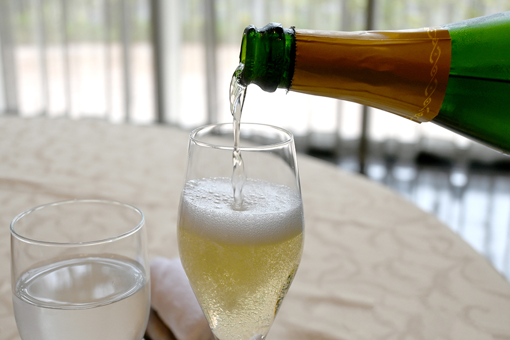 ドリンクはスパークリングワインをオーダー(別料金)。