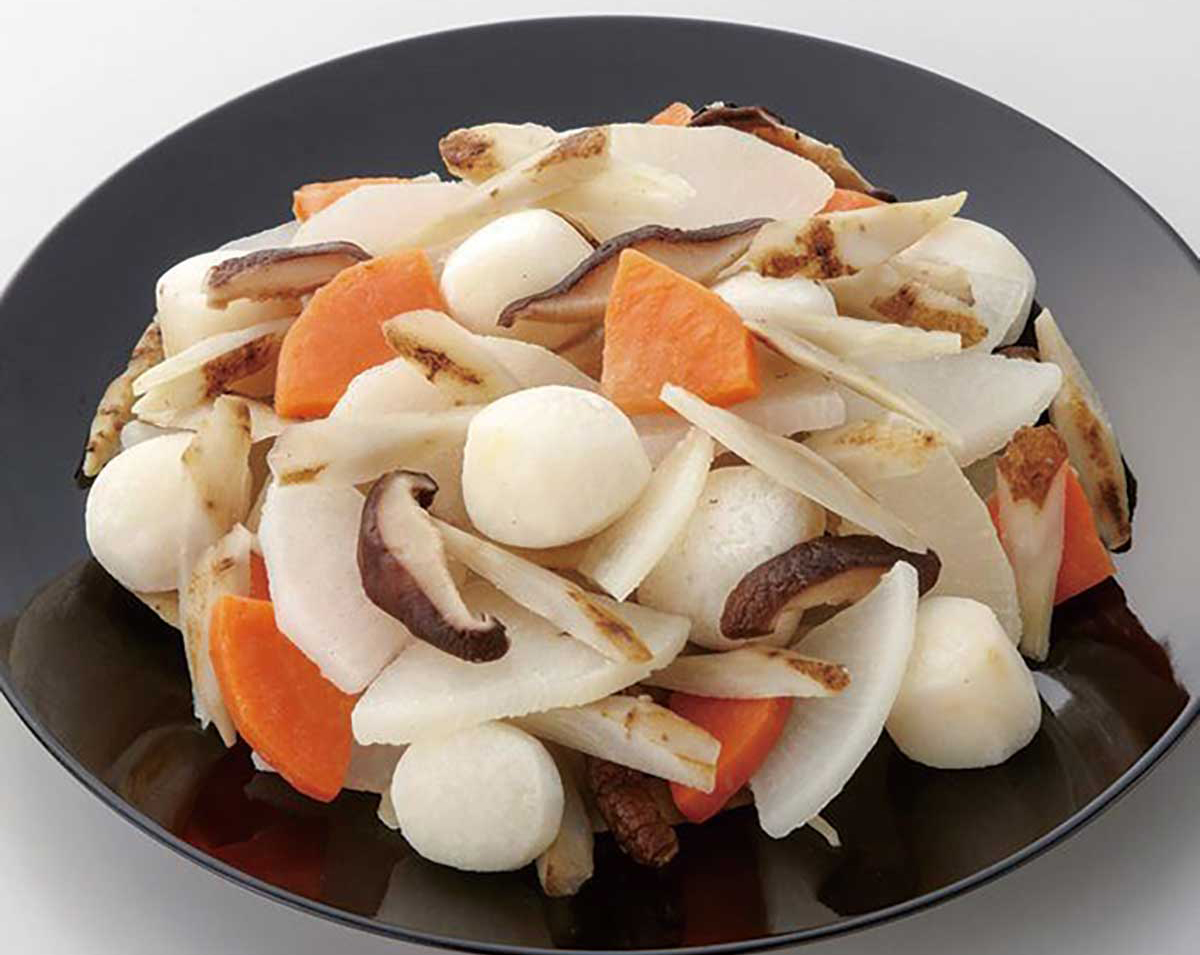 さといも、大根、椎茸、ごぼう、人参の5種類をミックス。 凍ったまま沸騰した鍋に入れて味噌汁や豚汁などで召しあがりください。 切る手間がなく、火の通りも早いので時短調理に便利です。