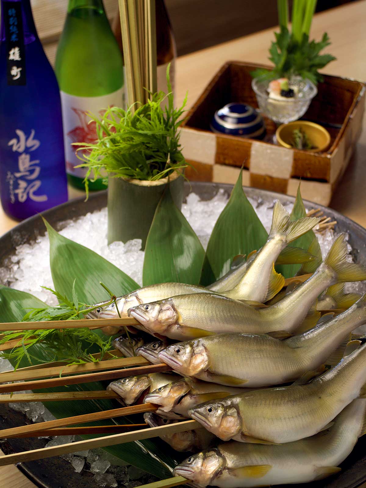 料理人の目利きした初夏の若鮎は、シンプルだからこそ素材の味わいがダイレクトに感じられる塩焼きでいただく。