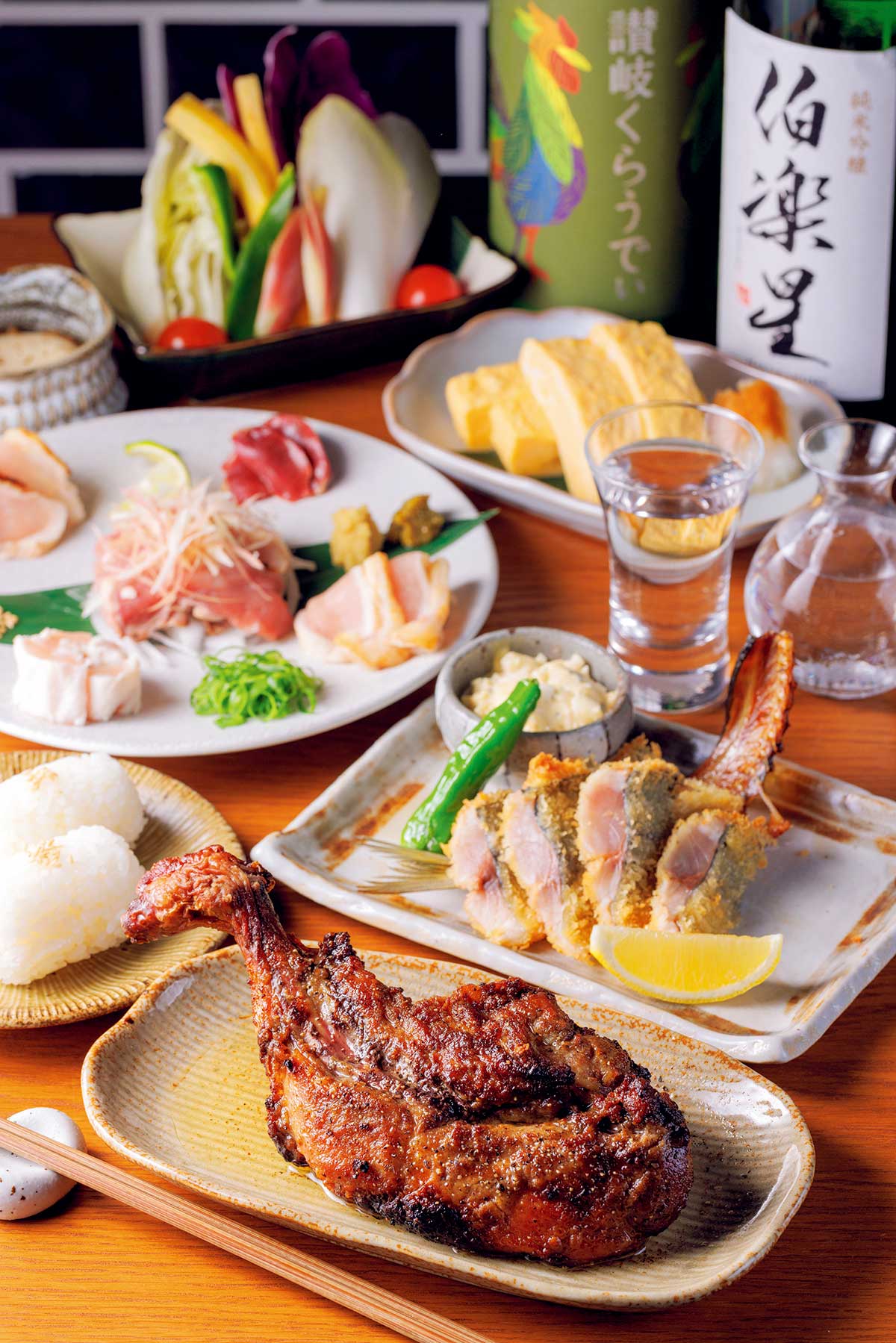 提供されるのは、骨付き鶏の一本焼きや、讃岐うどんといった香川県の郷土料理だ。