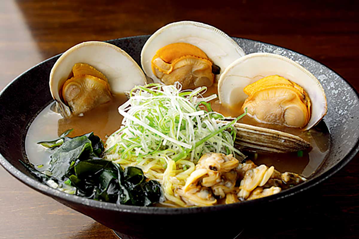 人気の「はまぐりラーメン」。しょうゆ味、塩味、味噌味、辛味噌味と味わいも豊富。テイクアウトも可能。