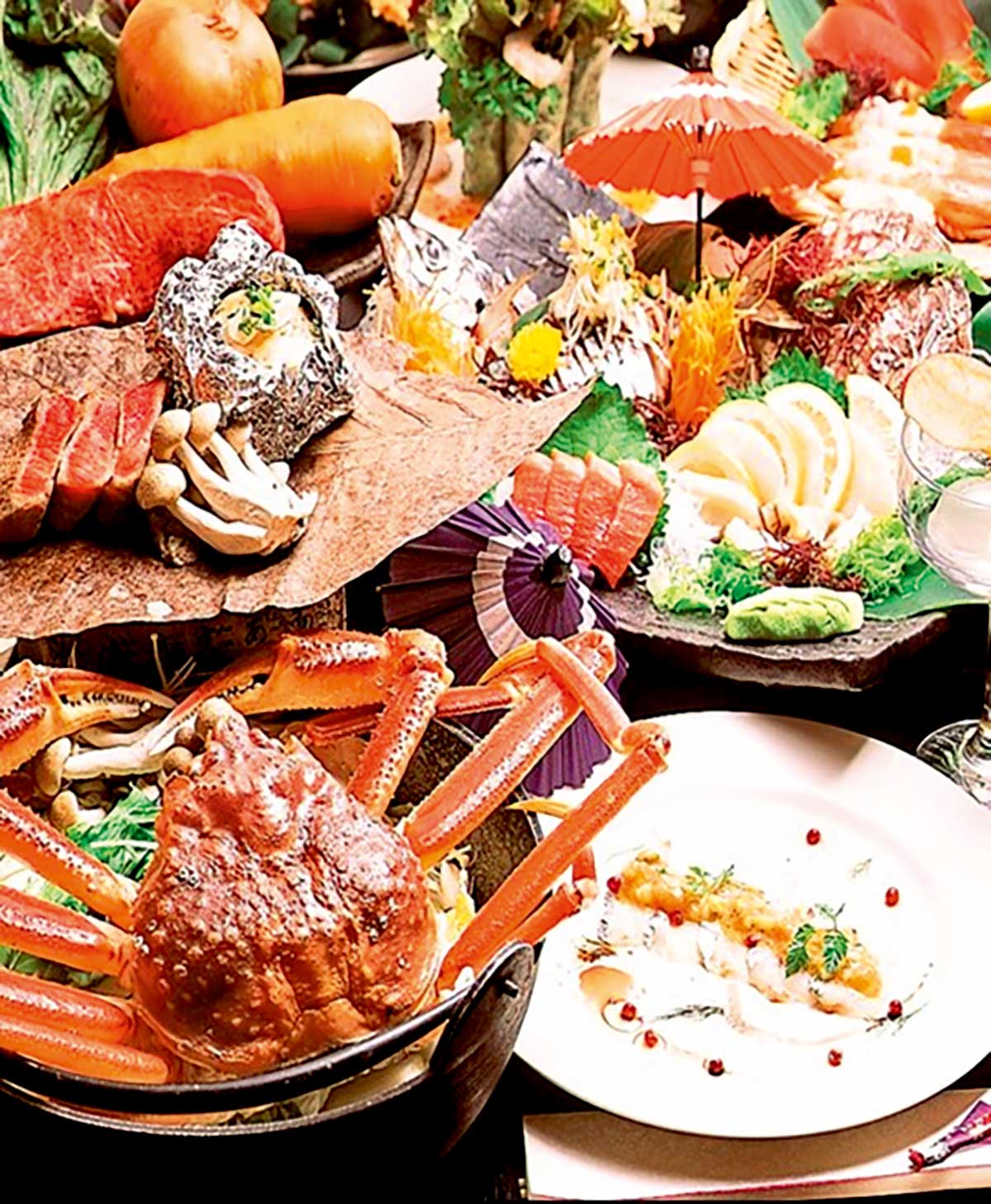 また、忘・新年会におすすめの「北海道プラン」は飲み放題付きで、ズワイガニなどの北海道名物が全9品登場する。