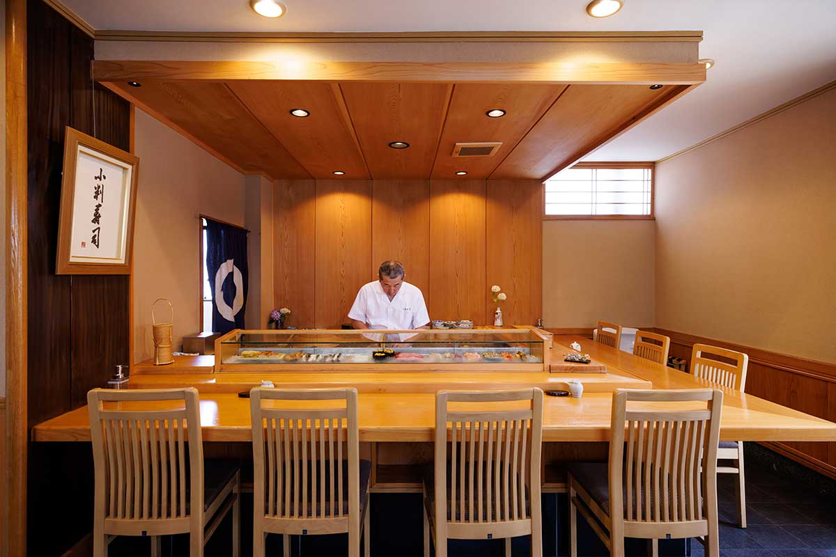 福島県出身の和知さんは仙台の小判寿司で9年間修業した。初代親方、鞠古仁さんに師事し寿司職人としてのいろはを教わった。というよりそばにつき、見聞きして多くを学んだ。職人の育成に熱心だった鞠古さんが講師の依頼を受けたときも助手として同行し、その知識を吸収した。「道すがら貴重な話をたくさん聞かせてもらいました。多くの弟子の中で誰よりも長い時間を一緒に過ごしたと思います」。ずっと仙台にいるよう声もかかったが、故郷に戻るという意志は揺るがなかった。暖簾分けを許された和知さんは「小判寿司」の名を継承し、地元の棚倉町に店を構えた。