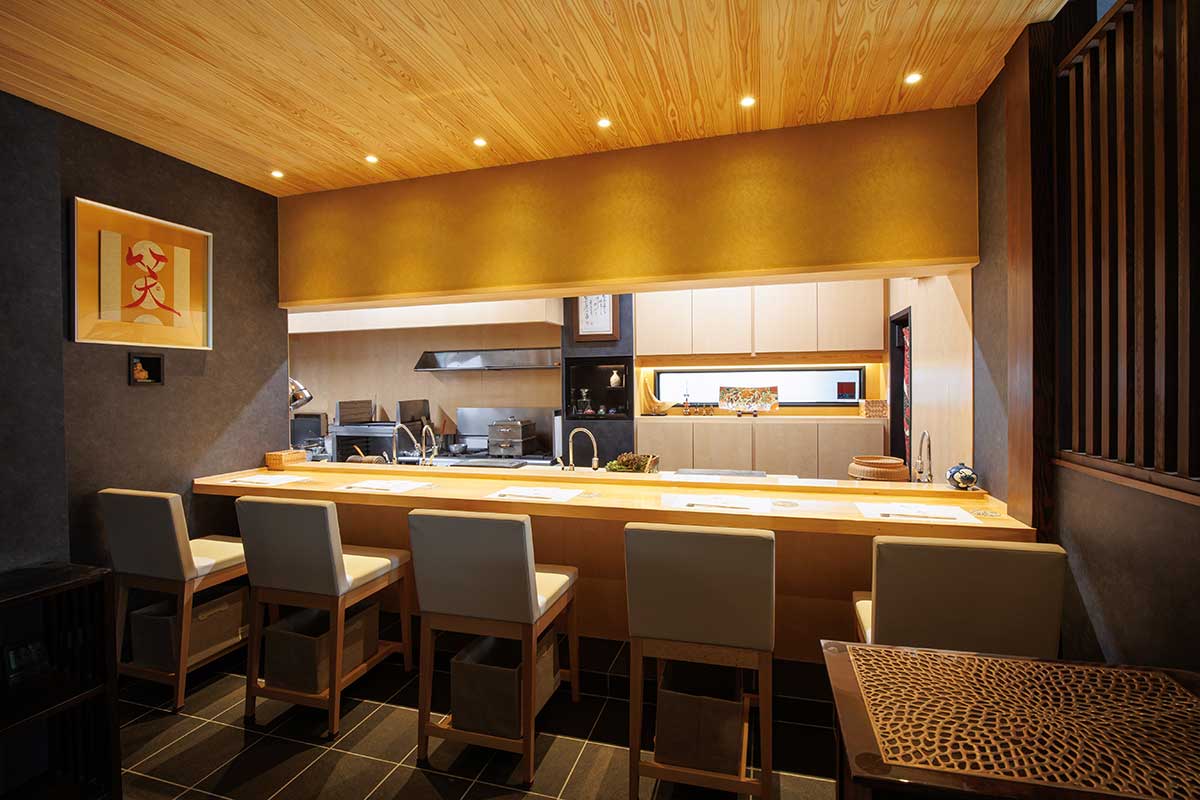 コの字型のカウンター。和知さんの職人技こそ最高のごちそう。