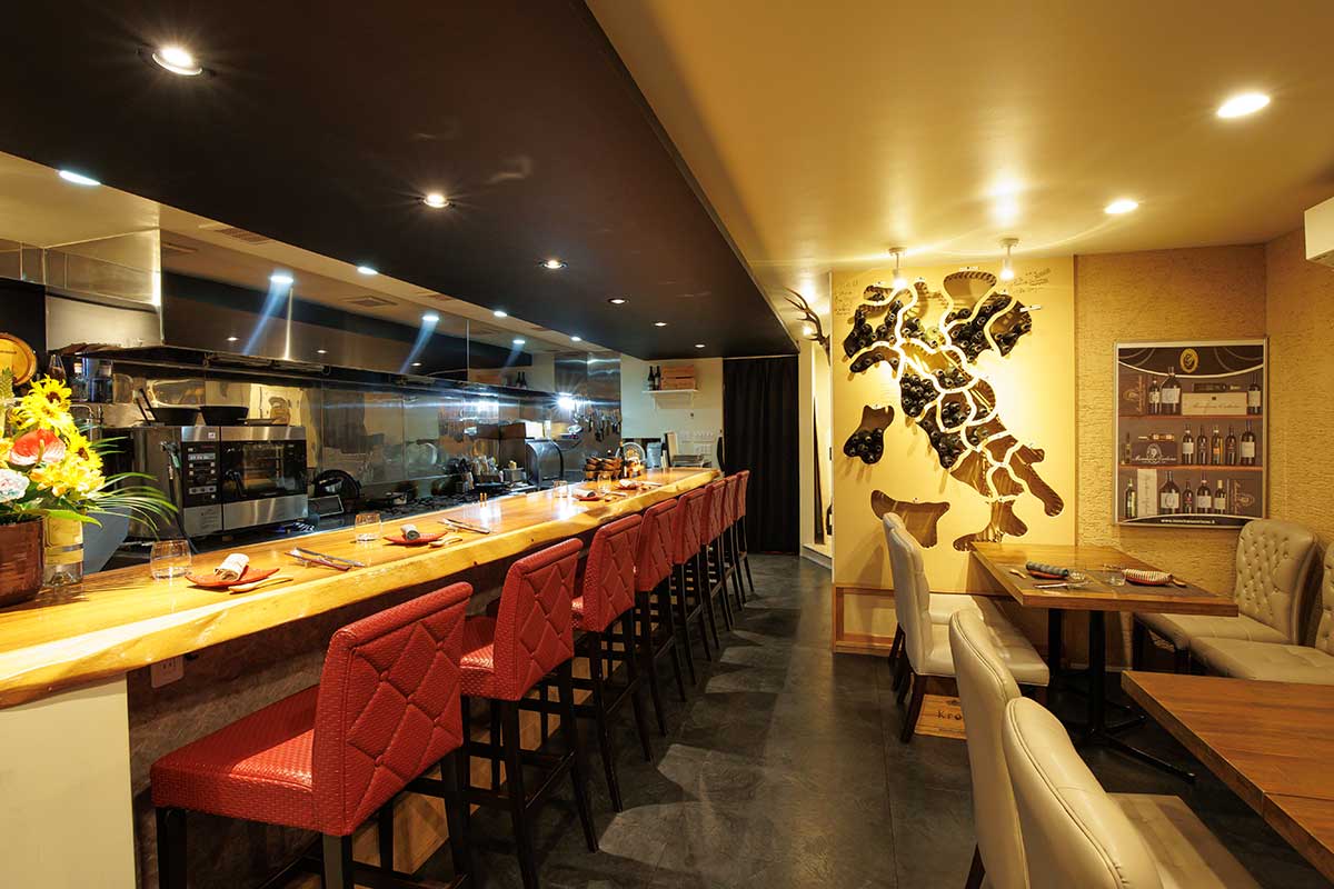 シェフとの距離が近いカウンター席は居心地よく、長居したくなる。