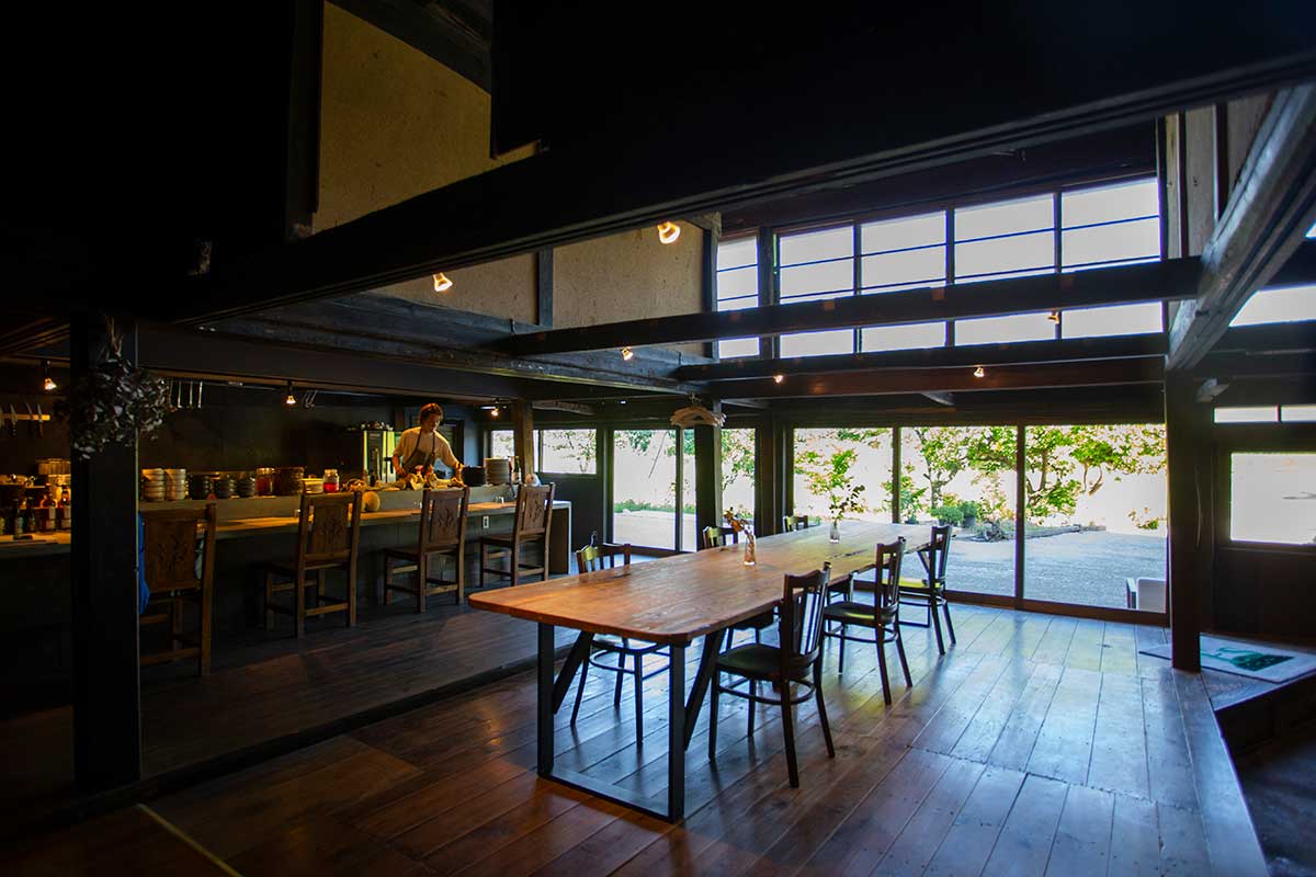 「大張界隈に住む人たちは、みんな昔なにかしらの用事があって、この家に来ているそうです。昔を懐かしんで来てくれる人も多いんですよ」と話すのは、オーナシェフ・新村彰人さん。都内のフランス料理店などで研鑽を積み、丸森町に移住してきた。「出身地の北海道や、長野でも古民家を探していました。その話を知った宮城県の友人が、この場所を紹介してくれたんです。家の前に小川が流れていて、山があり、畑もある。庭でバーベキューもできるし、なにより生産現場が近い」と、この場所に決めた。