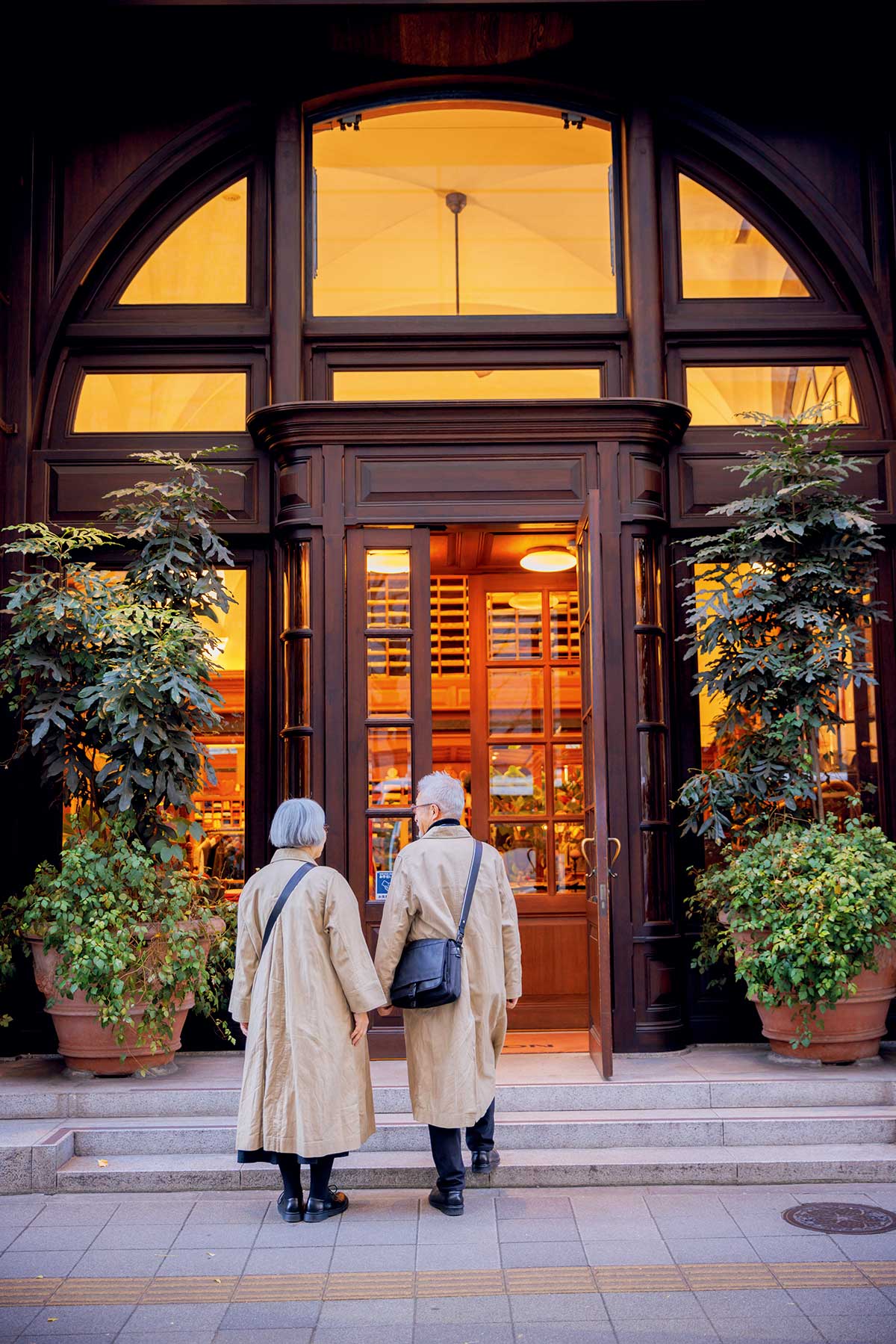 2人が楽しみにしていた『パパスカフェ 丸の内本店』は、柔らかいアーチを描く梁や漆喰の壁、木製の調度品が落ち着きを演出。