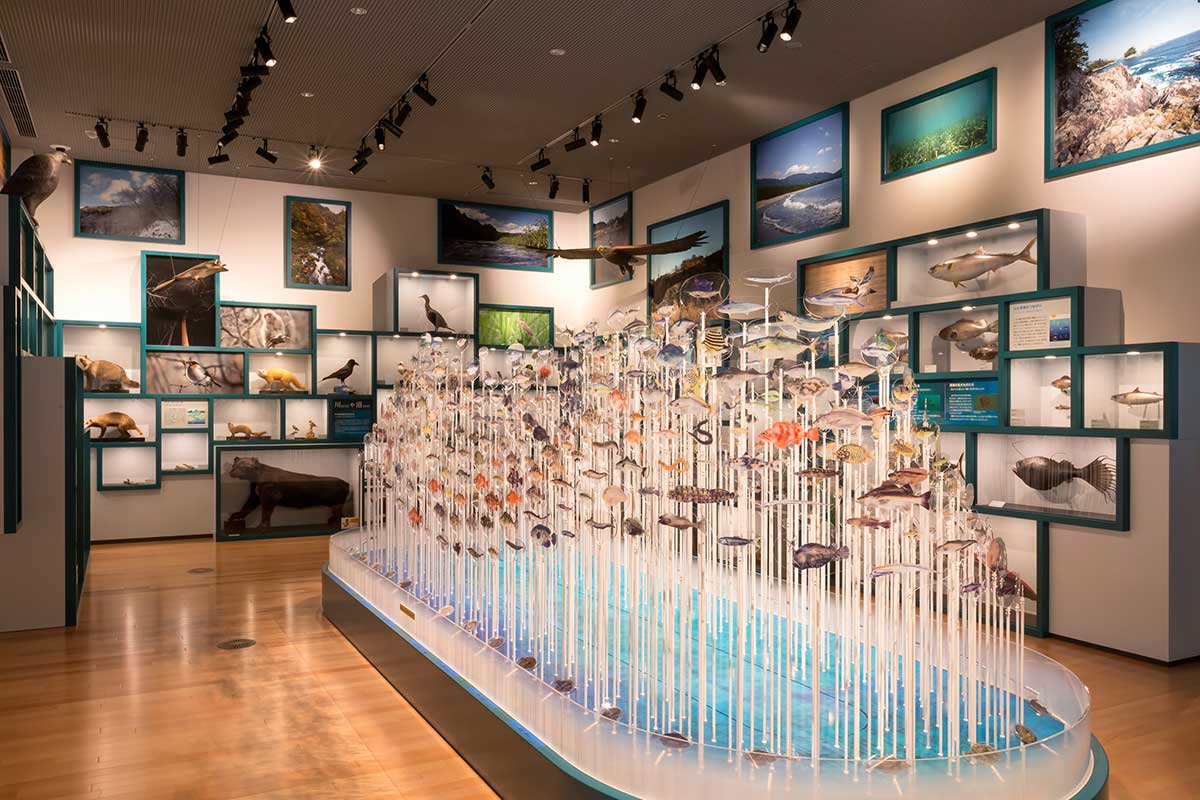 三陸の海の豊かさを伝える「奇跡の海 三陸」コーナー。 工夫を凝らした飽きさせない展示方法も魅力だ。